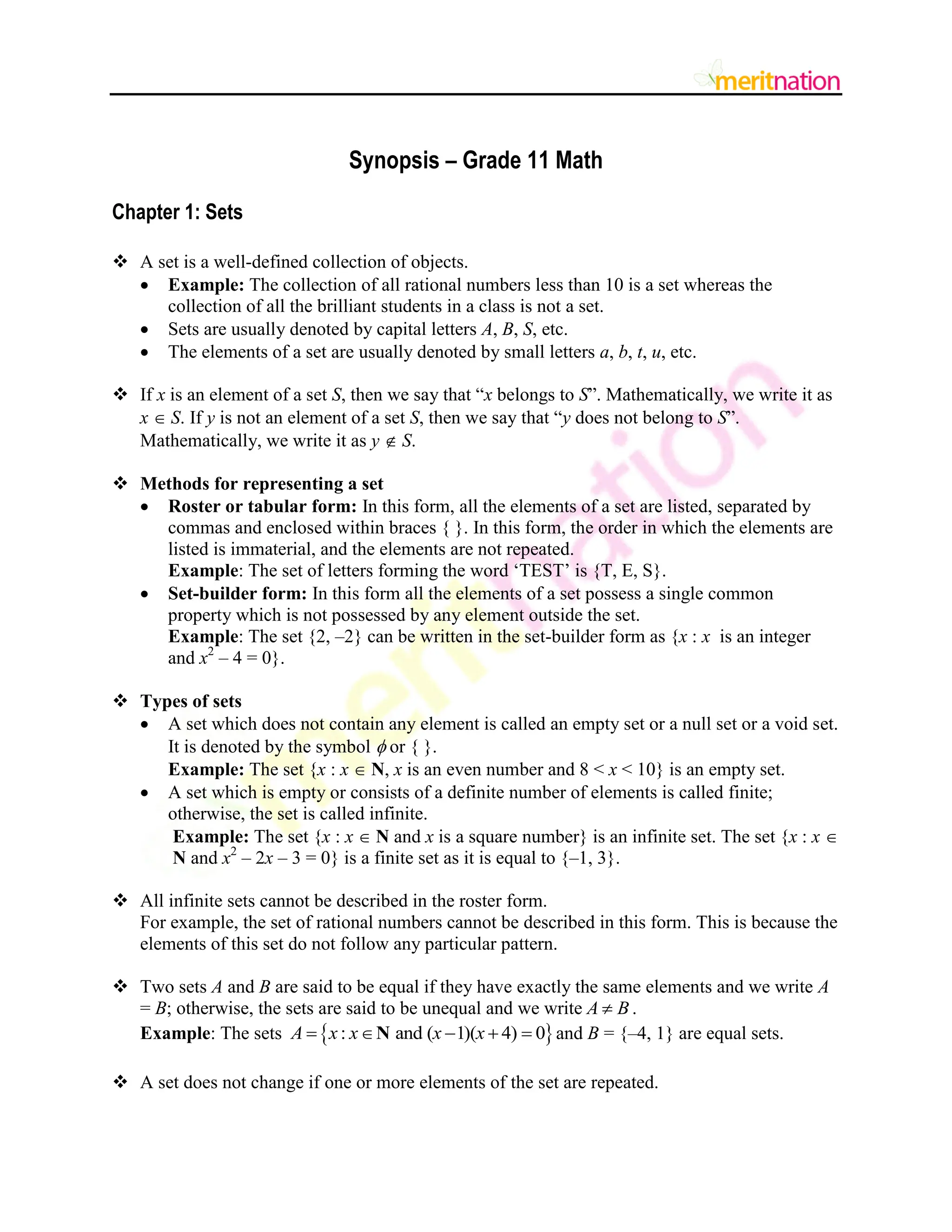 Synopsis – Grade11 Math
