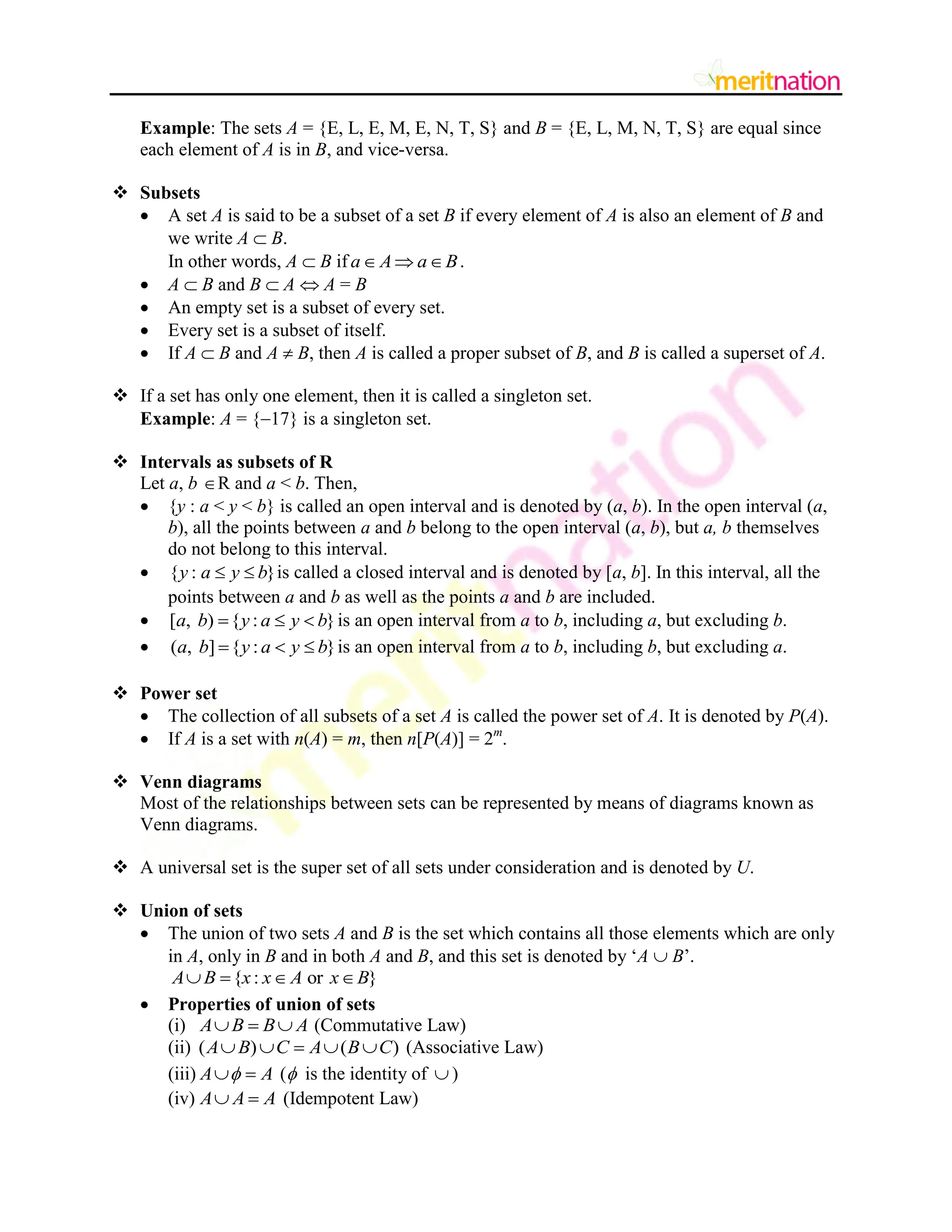 The union of two sets A and B is the set which contains all those elements which are only