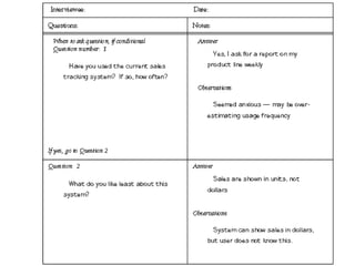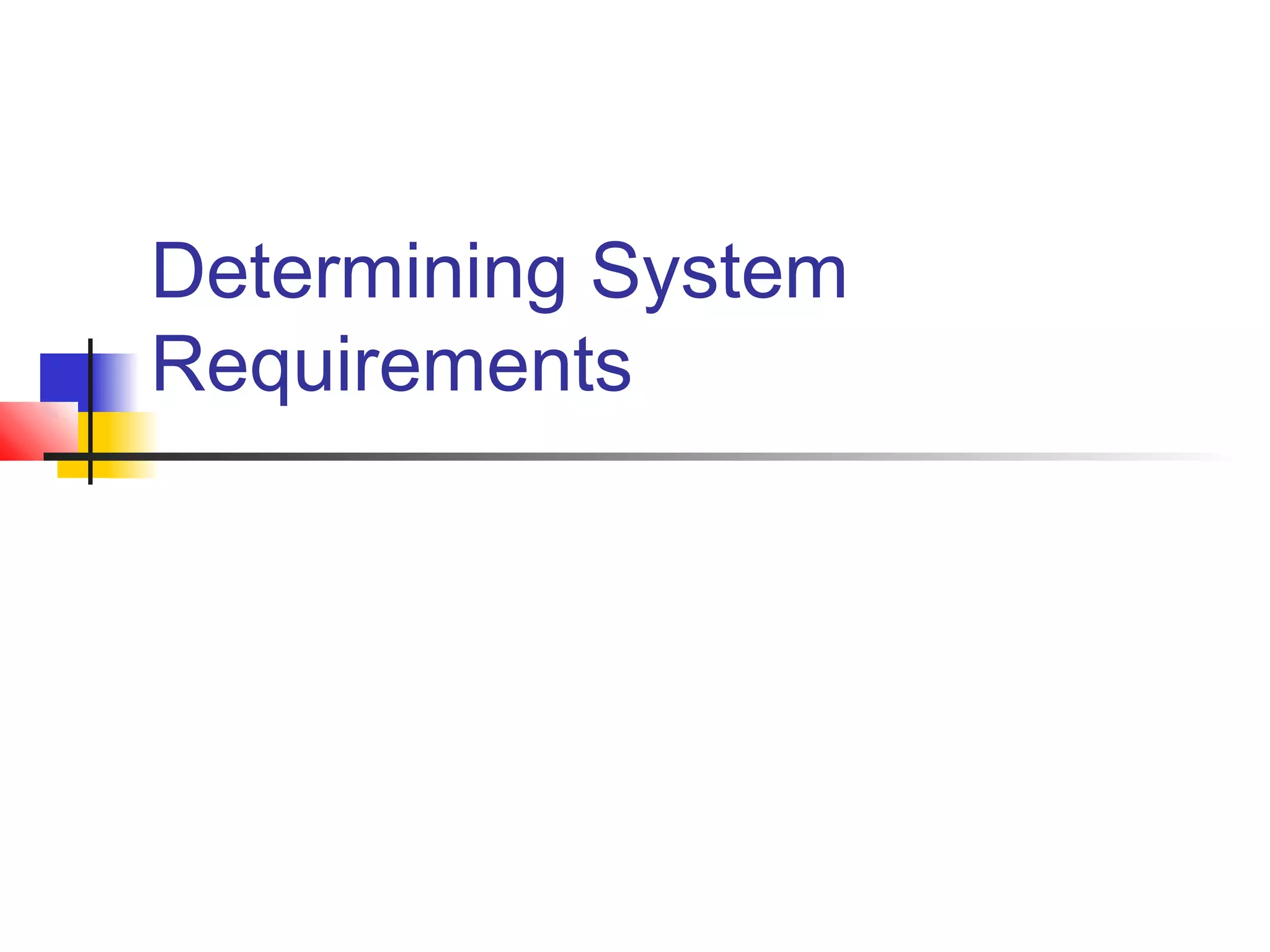This document discusses various methods for determining system requirements in the systems development life cycle (SDLC). It describes traditional methods like administering questionnaires, interviewing stakeholders, observing users, and analyzing documentation. It also discusses structuring requirements by viewing the system's process flow and data structure. Modern methods mentioned include prototyping, joint application design sessions, using group support systems, business process reengineering, and CASE tools.