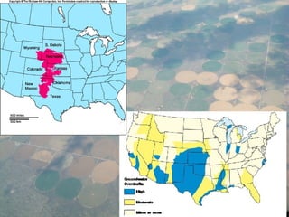 This document discusses water resources, supply and demand, modification of waterways, and water quality and pollution. It notes that only a small percentage of Earth's water is available for human use. Water demand has tripled since 1950 due to population growth, climate, and development. Most water is used for household and agricultural purposes. Modification of waterways and overuse of resources like the Ogallala Aquifer have environmental consequences. Water pollution from sources like agricultural and industrial runoff degrade water quality. The Clean Water Act aimed to regulate water pollution in the United States.