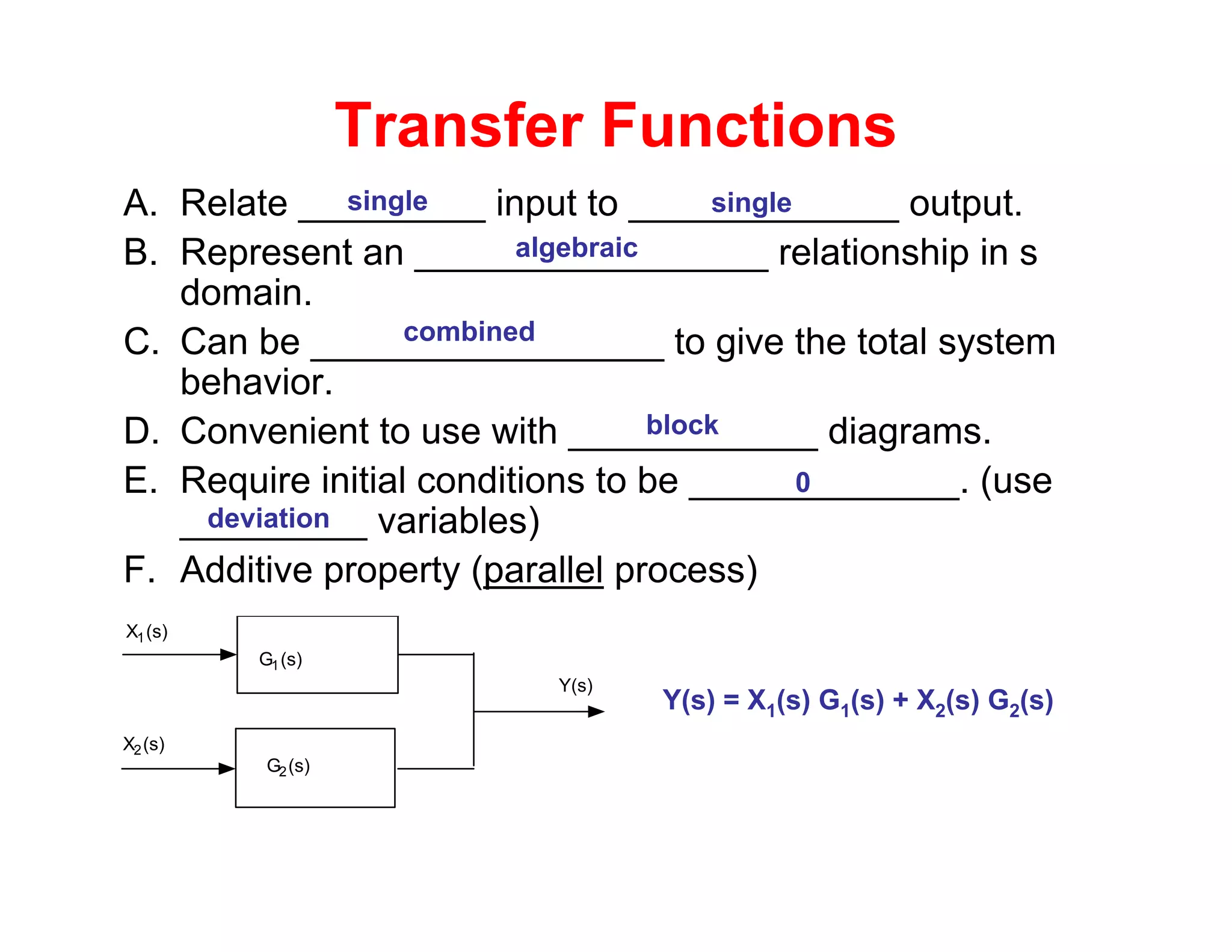 Transfer functions relate an input to an output in the s-domain and can represent systems. They have properties that allow them to be combined to model overall system behavior. Initial conditions must be specified when using transfer functions. The limit of a transfer function as s approaches 0 gives the steady state gain of the system. Group activities involved deriving and manipulating transfer functions to model capacitance, voltage, temperature, and heat transfer in systems.