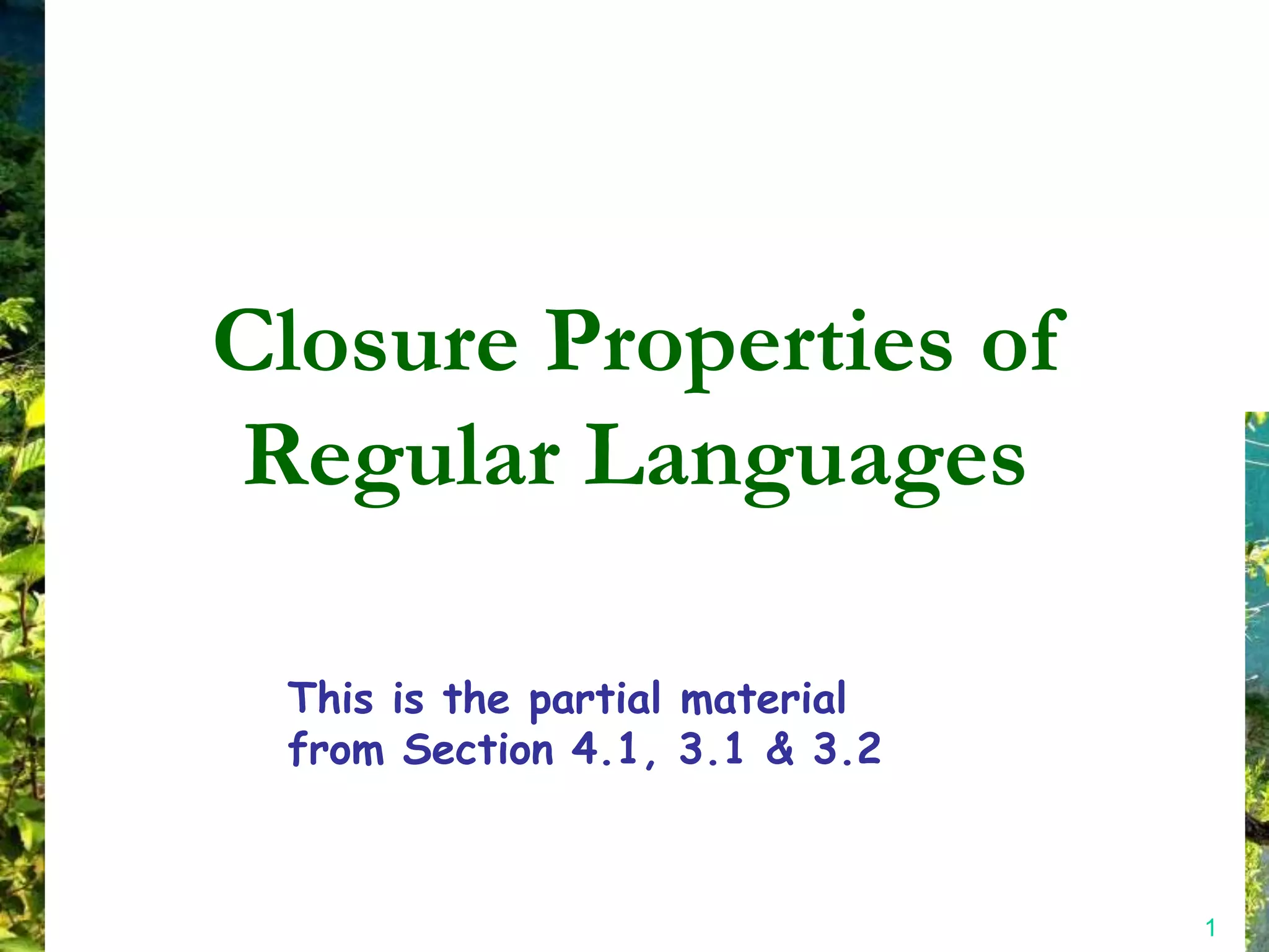 This document discusses closure properties of regular languages under various operations. It proves that regular languages are closed under union, concatenation, Kleene star, reversal, complement, and intersection by constructing non-deterministic finite automata (NFAs) to recognize the languages resulting from these operations. Examples are provided to illustrate the constructions of NFAs for union, concatenation, Kleene star, and reversal. The document also discusses using DeMorgan's laws to show closure under complement and intersection.