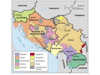The document discusses concepts related to nationalism, nations, states, and nation-states. It defines key terms like nation, state, sovereignty, and nation-state. It provides examples of states that correspond to these concepts, like nation-states where the nation and state boundaries align, as well as multinational states. The document also examines forces that both unite and divide states, like nationalism, geography, and conflicts over land and borders. A significant portion discusses the history of nationalism and conflict in the Balkan region and between Israel and Palestine.