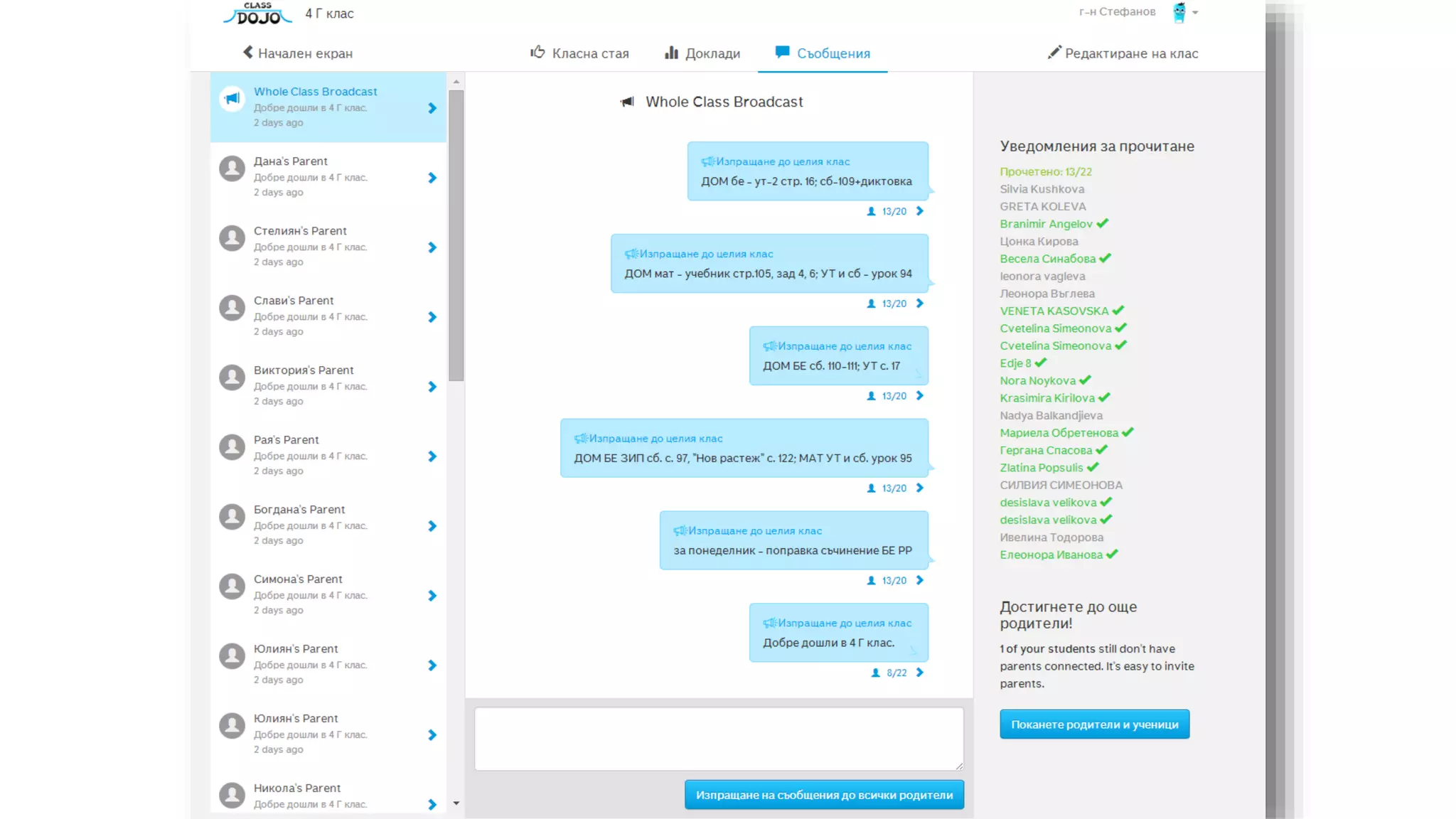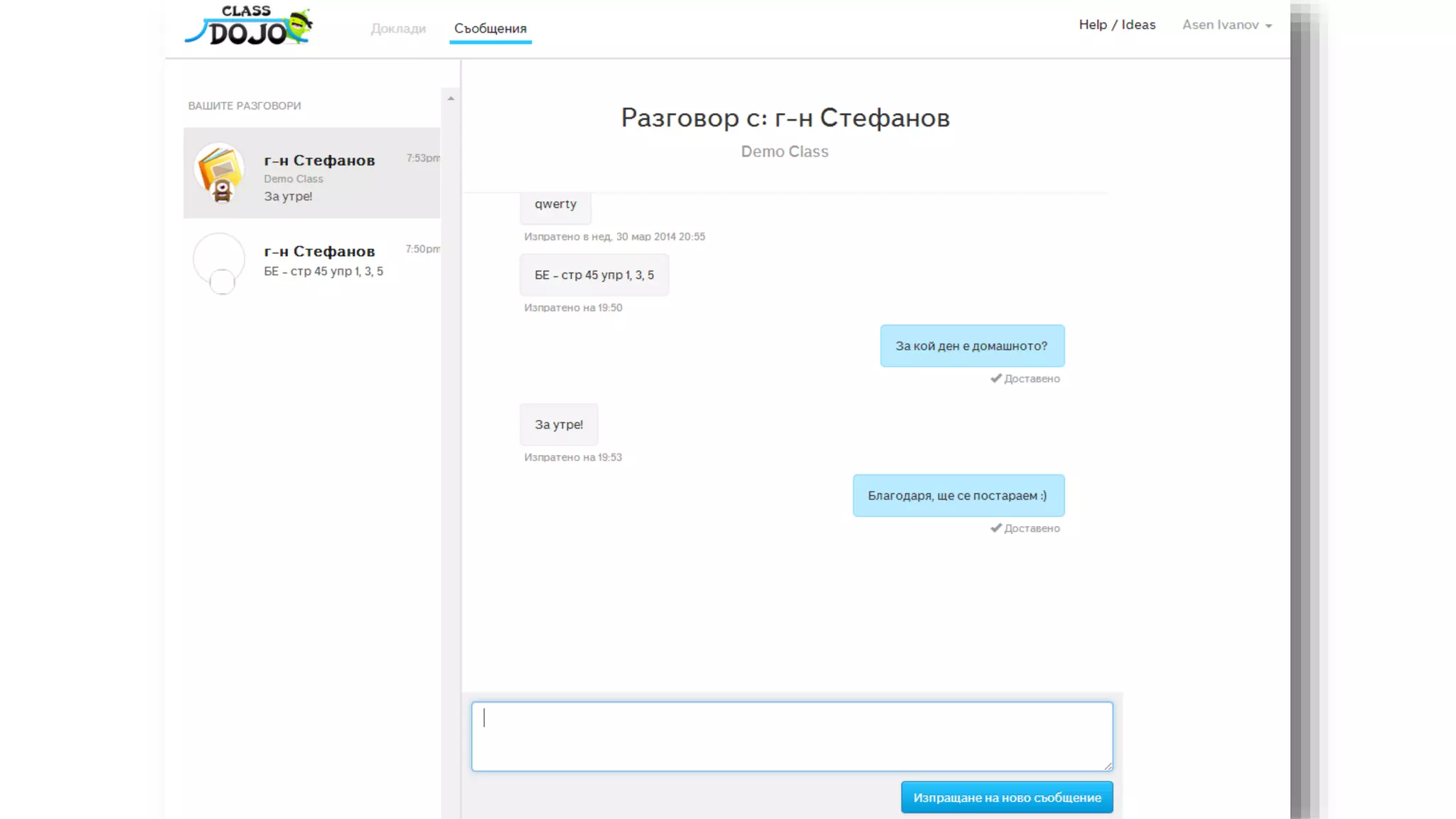 • Получават съобщения от учителя, отговарят на тези съобщенията