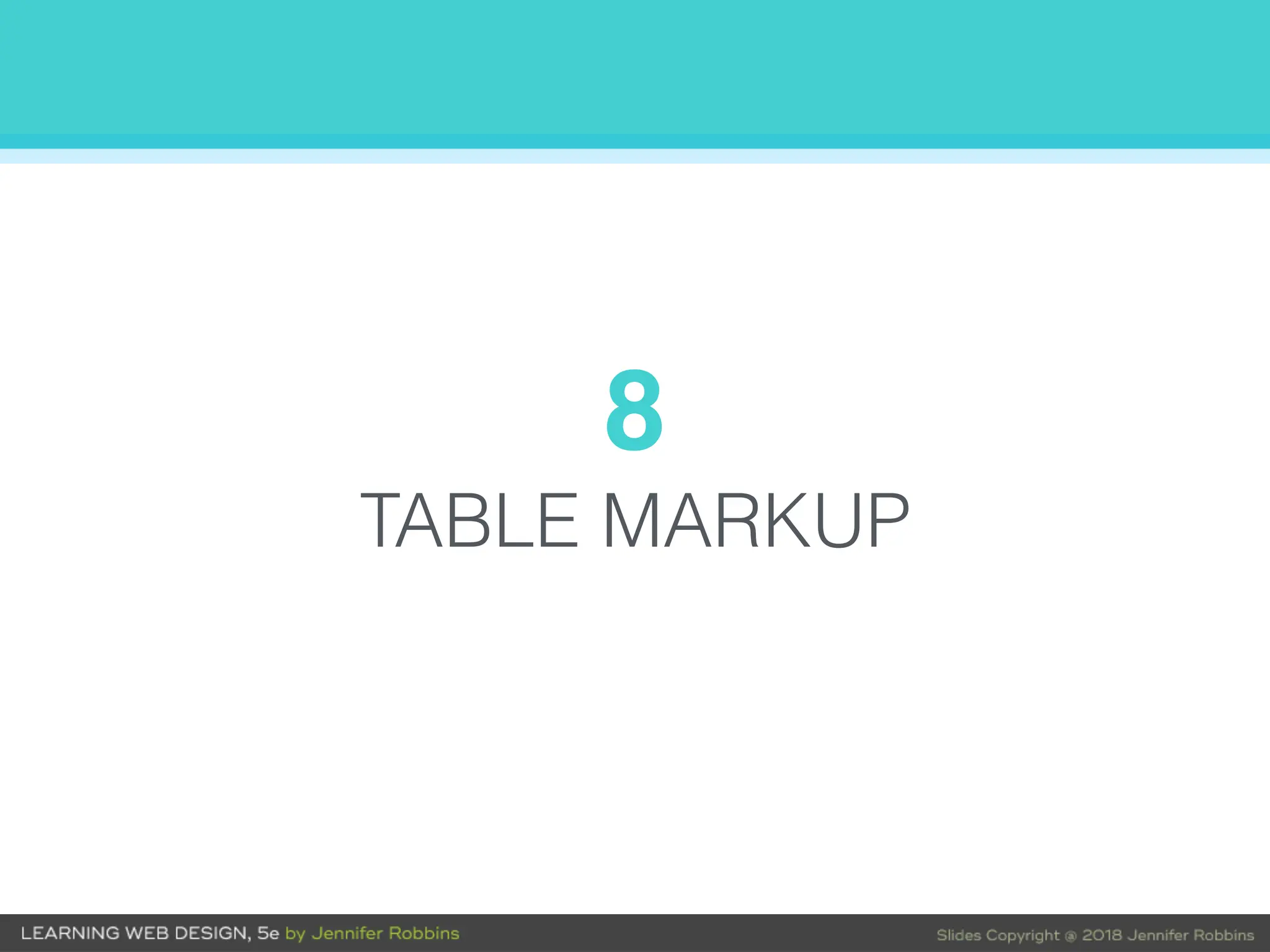 The document provides a comprehensive overview of HTML table markup, detailing the structure of tables, including elements like <table>, <tr>, <th>, and <td>. It covers table features such as cell spanning, captions, and the use of row and column groups, emphasizing accessibility and semantic structure. Additionally, it explains how to use colspan and rowspan attributes for customizing table layout and the role of <colgroup> for styling columns.