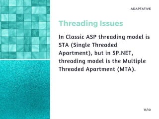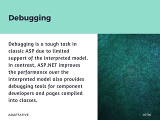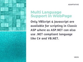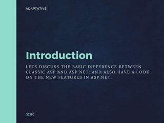 Lets discuss the Basic difference between classic ASP and ASP.NET. And also have a look on the New features in ASP.NET.