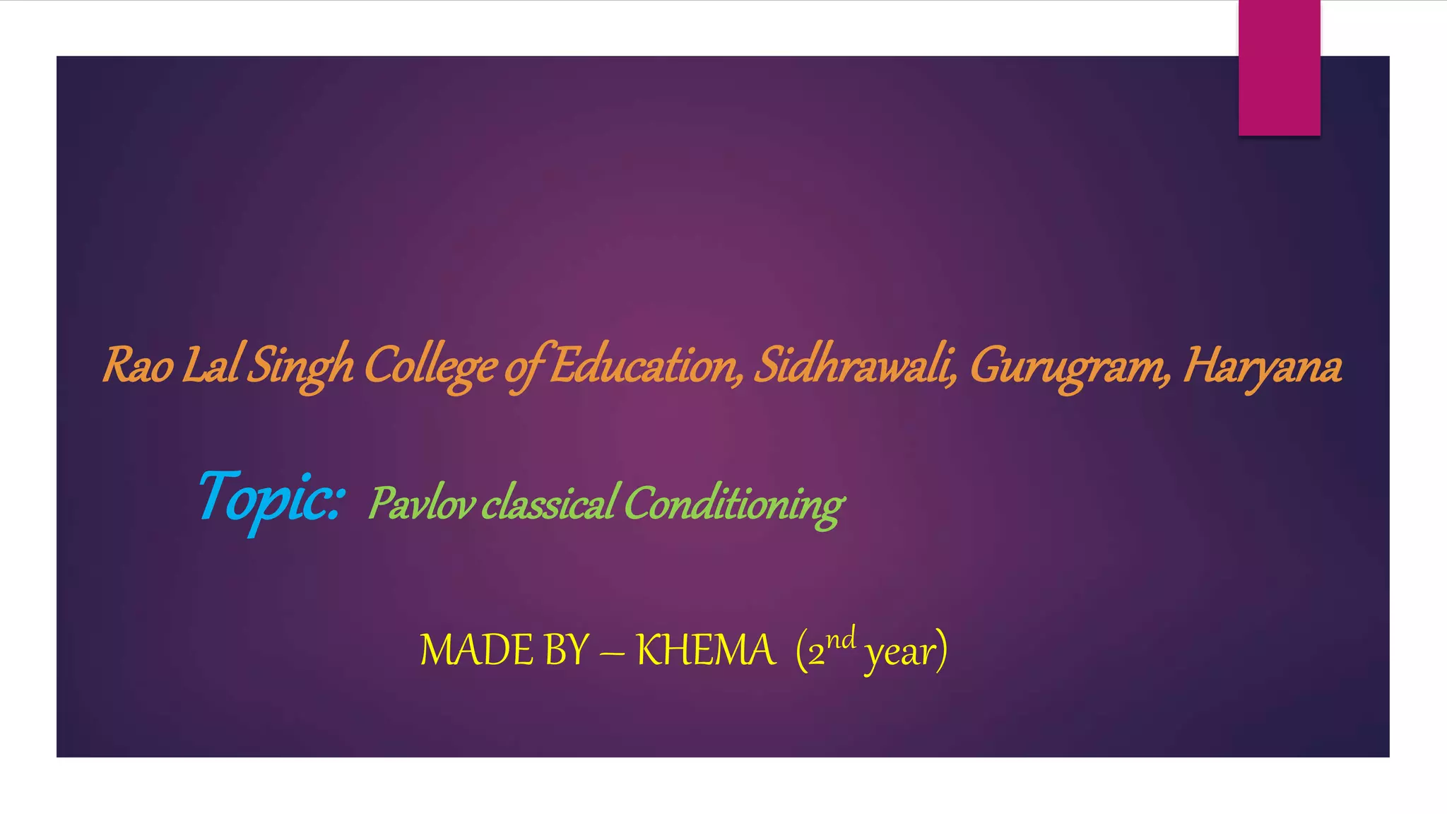 The document explains classical conditioning, a significant learning process discovered by Ivan Pavlov, which involves creating associations between stimuli to modify responses. Key concepts include unconditioned and conditioned stimuli and responses, acquisition, extinction, and the principles governing conditioning. The educational implications of this theory highlight its use in developing aptitudes and good habits in children.