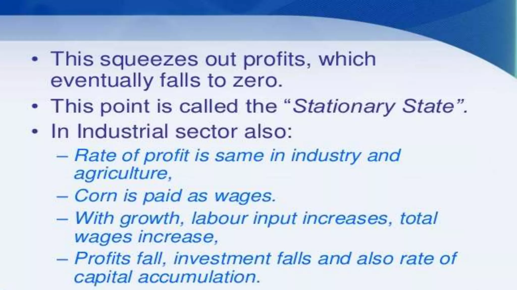 1) Adam Smith, David Ricardo, and J.S. Mill believed that economic growth would slow or stop due to increasing population and limited resources.
