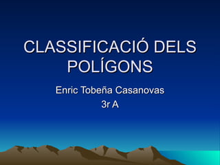 Classificació triangles enric 1. 2. ELEMENTS DELS POLÍGONS COSTATS: Són els segments que formen el polígon. VÈRTEX: Són els punts on s’uneixen dos costats. ANGLES: Són dos segments COSTATS VÈRTEX ANGLES 3. SEGONS ELS COSTATS DODECAGON ENDECAGON DECAGON ENNEAGON OCTAGON HEPTAGON HEXAGON PENTAGON QUADRILATER TRIANGLE 4. 5. 6. 7. 8. 9.