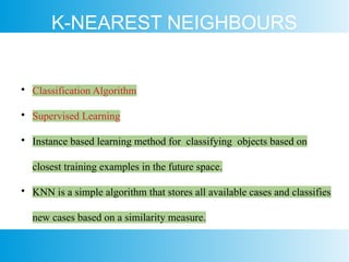 K-Nearest Neighbors (KNN)is a simple yet powerful machine