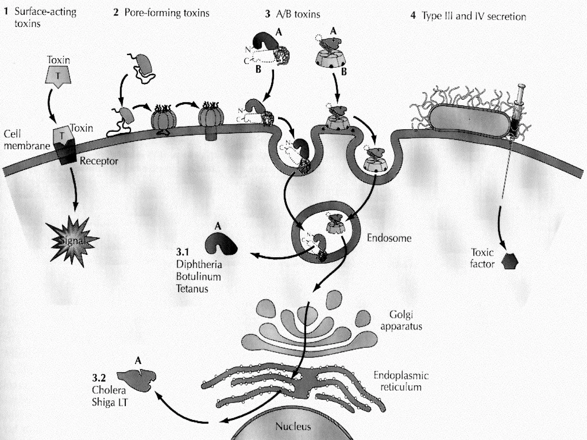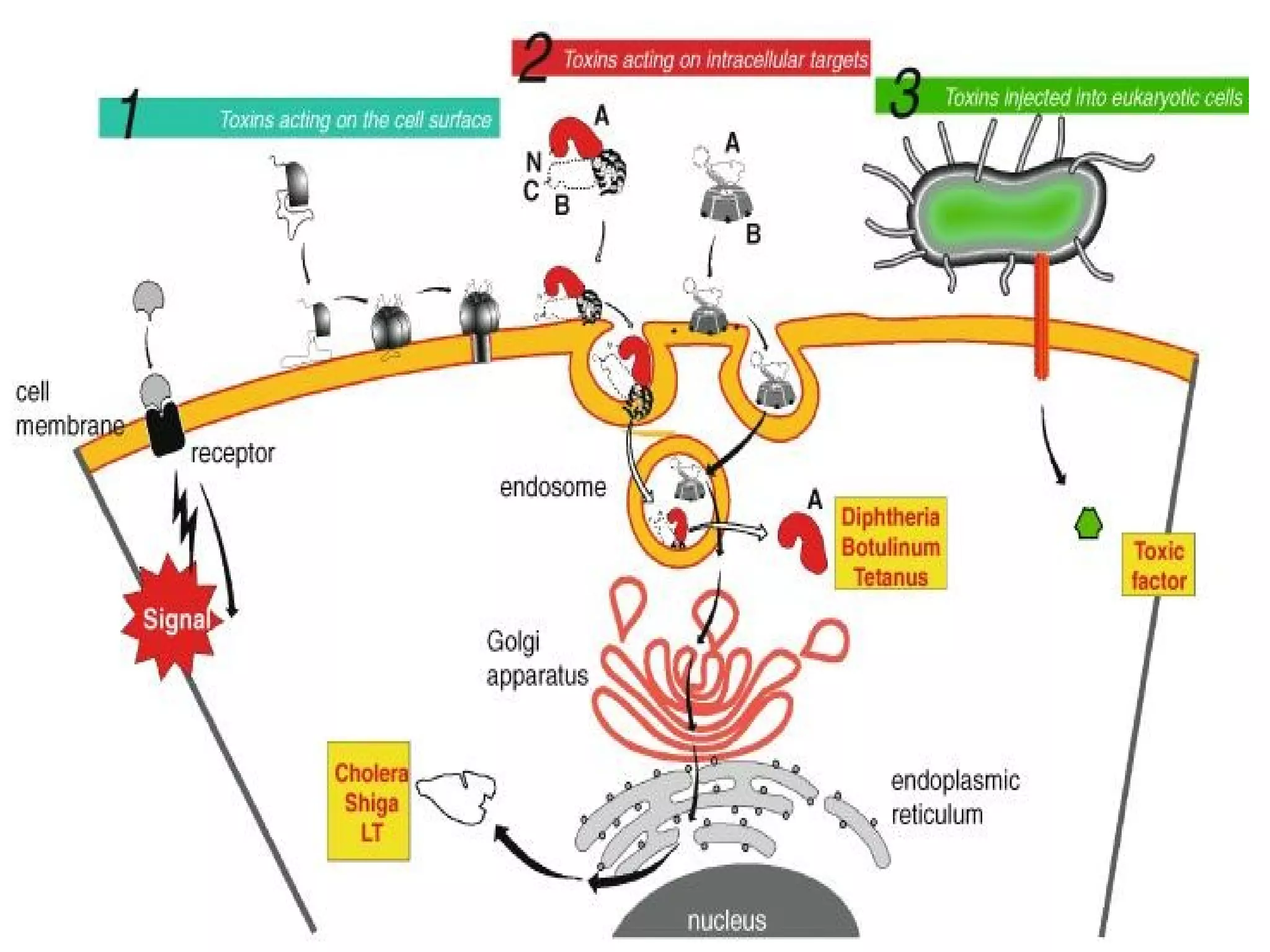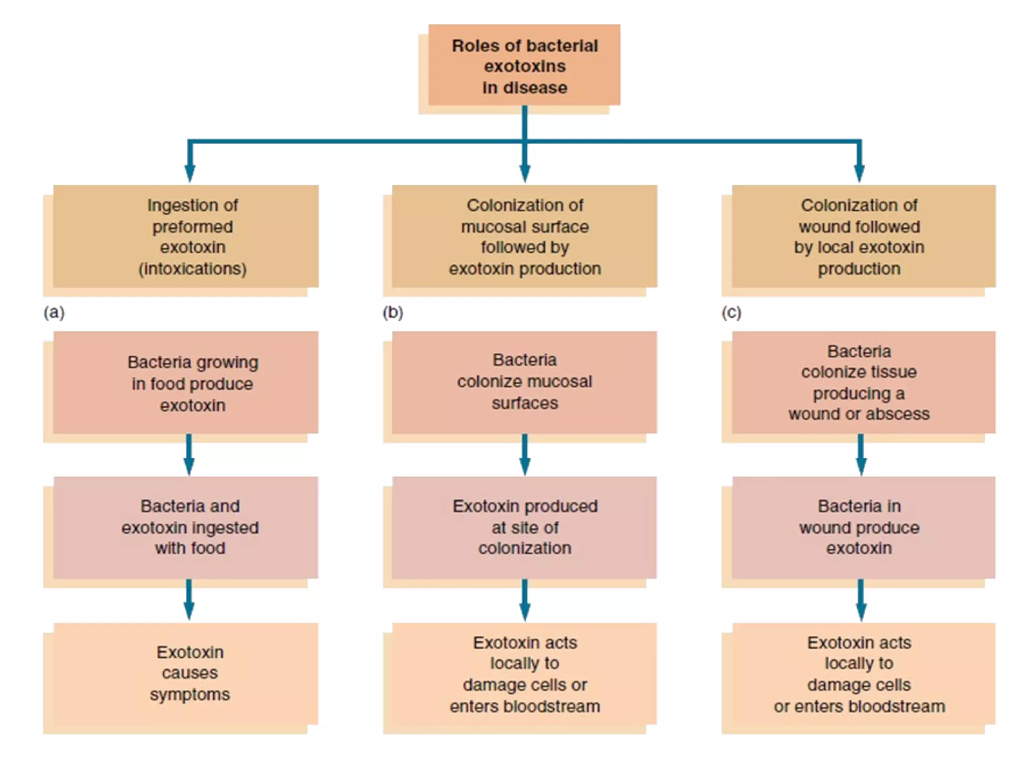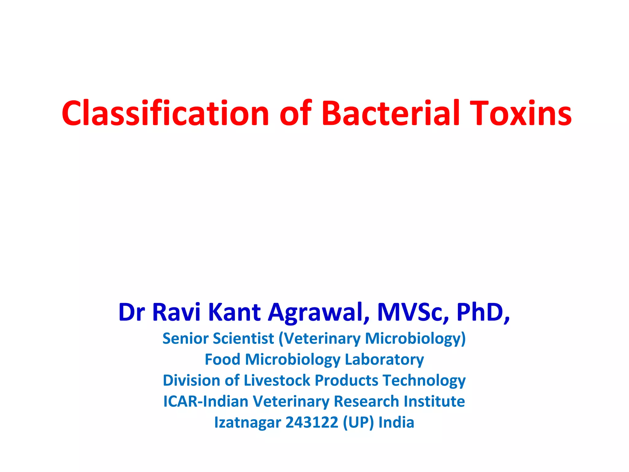 Bacterial toxins can be classified as exotoxins or endotoxins. Exotoxins are protein toxins secreted by bacteria, while endotoxins are structural components of the outer membrane of gram-negative bacteria. Exotoxins can be inactivated by heat or chemicals to form immunogenic toxoids, whereas endotoxins cannot. Exotoxins play an important role in several diseases by directly damaging host cells or tissues both locally and systemically.