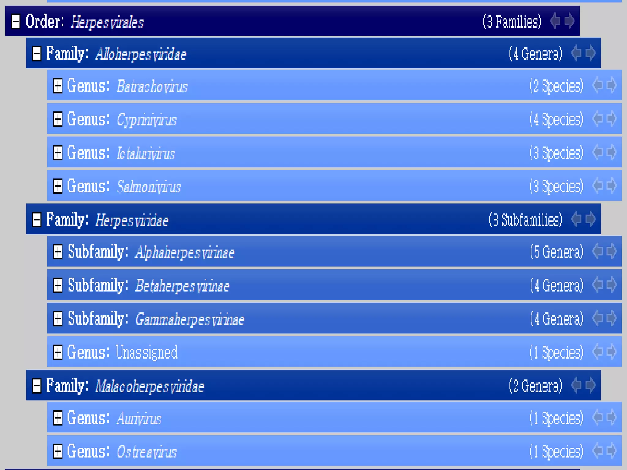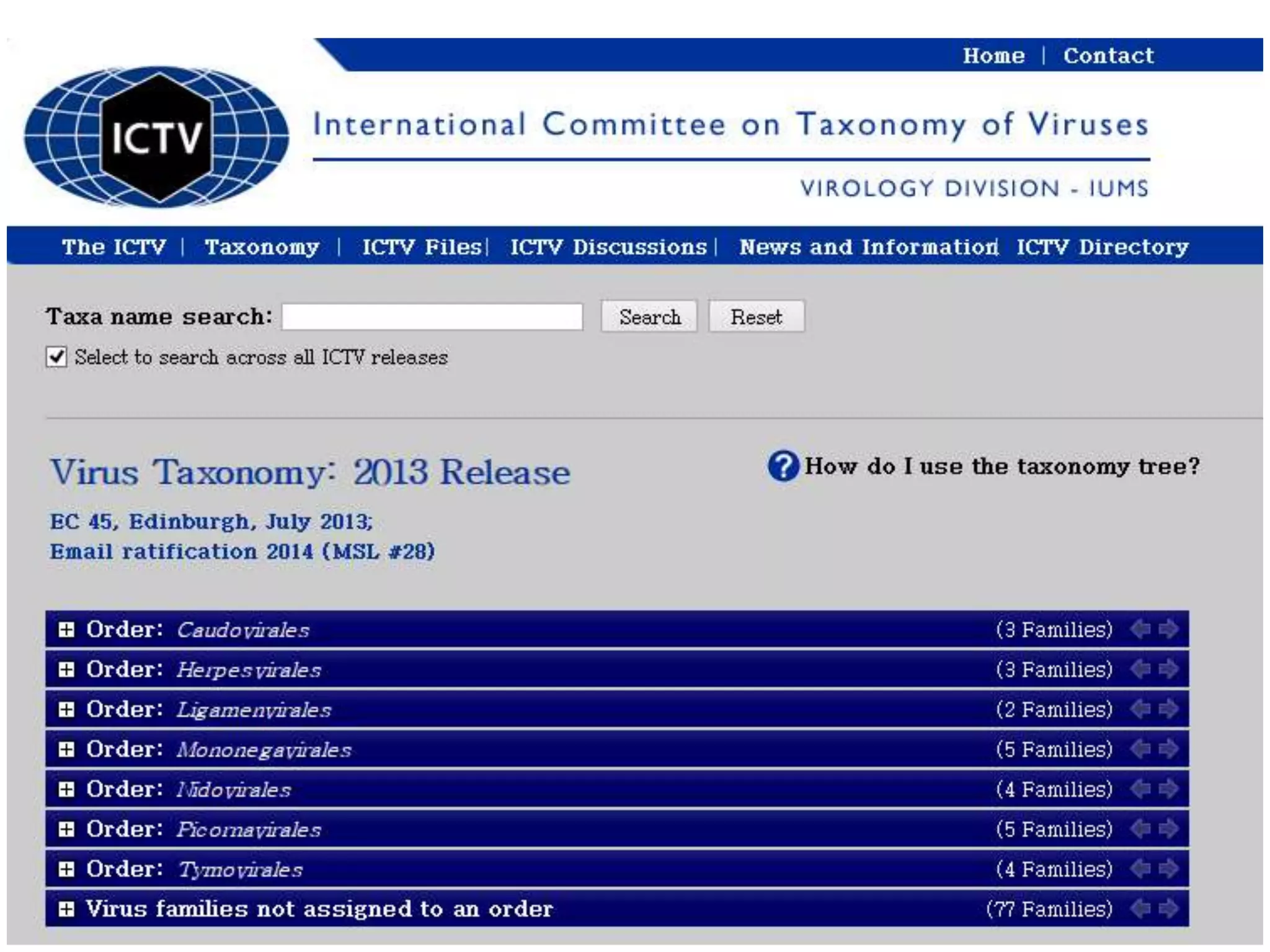 This document provides information on the classification and nomenclature of different virus groups. It discusses several historic and modern systems for classifying viruses, including the Holmes, LHT, Casjens and Kings, and ICTV systems. The International Committee on Taxonomy of Viruses (ICTV) system is the current standard, and classifies viruses based on genome composition and structure. Examples of virus families and genera are provided, including the Myoviridae, Podoviridae, and Caudovirales families.