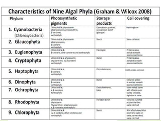 The classification of algae has been debated and revised over time as new evidence emerges. Early classifications by Fritsch in 1935 and Smith in 1950 focused on characteristics like pigmentation, flagella, food storage, and cell structure. Later classifications, such as by Bold and Wynne in 1985 and Lee in 1989, considered evolutionary relationships and the number of chloroplast membranes. Lee's 1989 classification divided algae into 4 evolutionary groups based on chloroplast structure. Ongoing research continues to refine algal taxonomy as new discoveries are made.