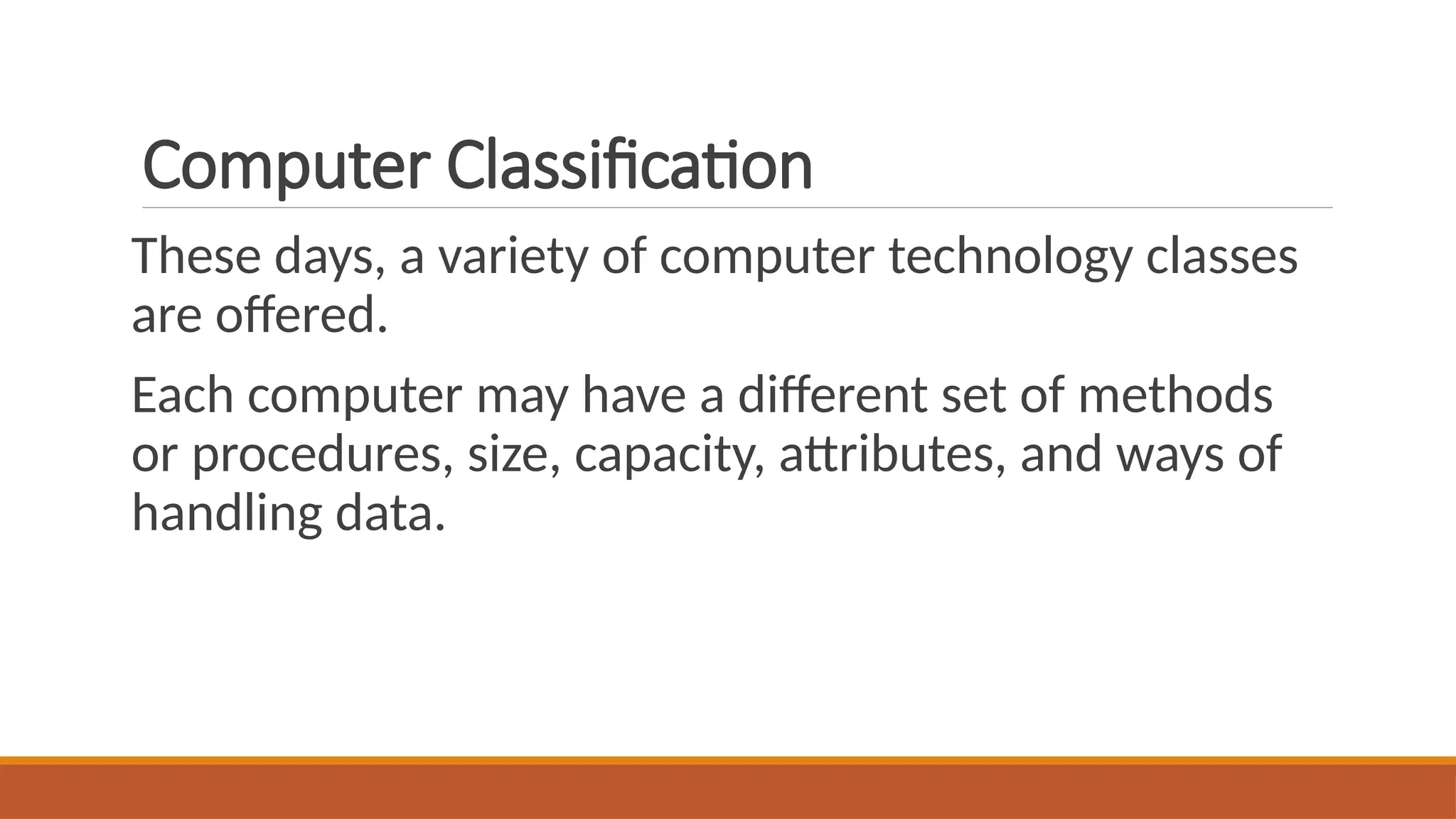 By Sizeand Capacity, [Supercomputer, Mainframe, Mini, and Micro Computer].