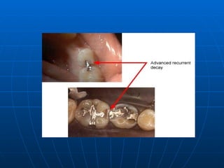 3. Based on the initial involvement of the tooth surface as primary or recurrent caries. Primary caries is the initial attack while recurrent caries occurs around restorations.