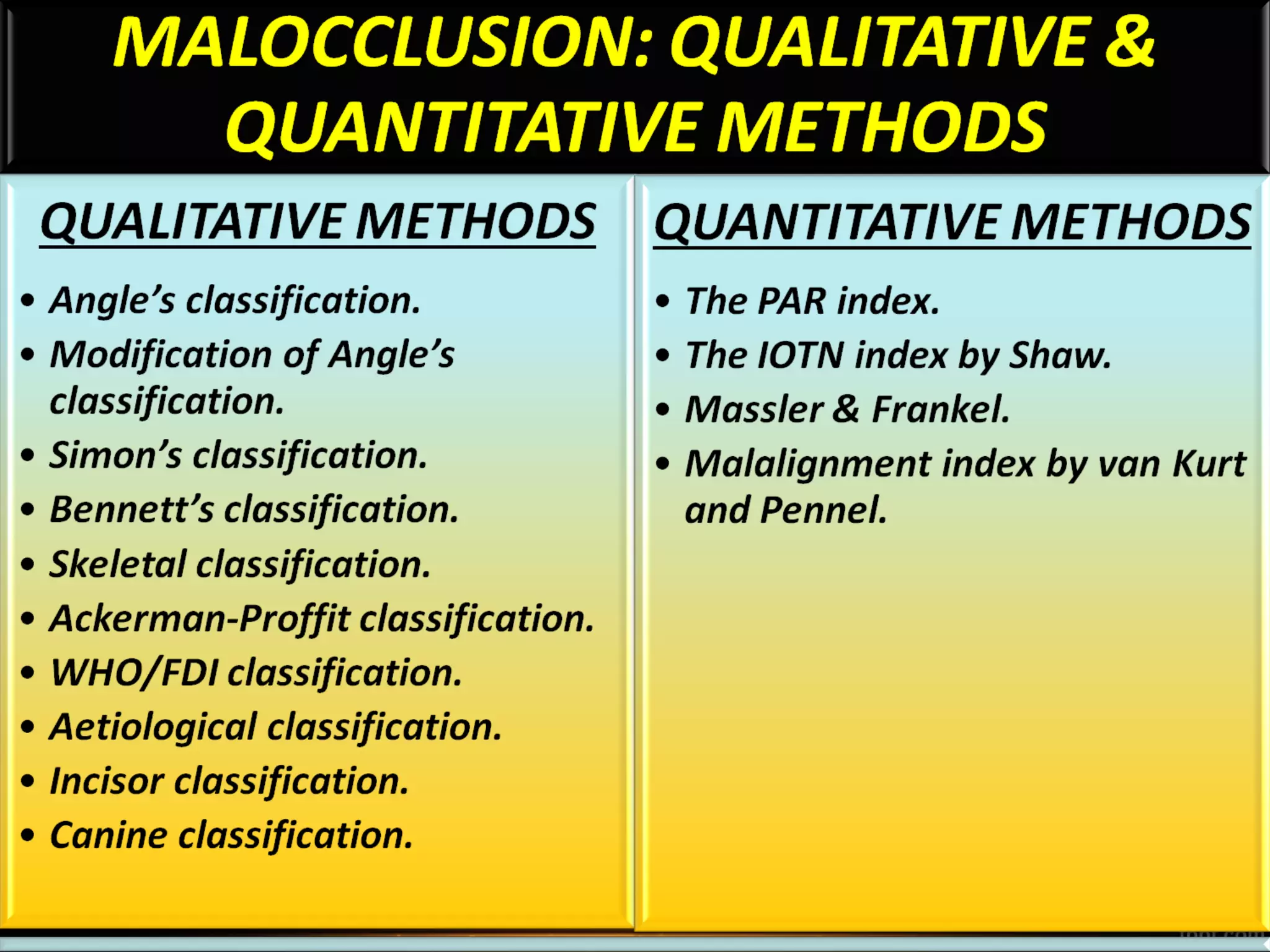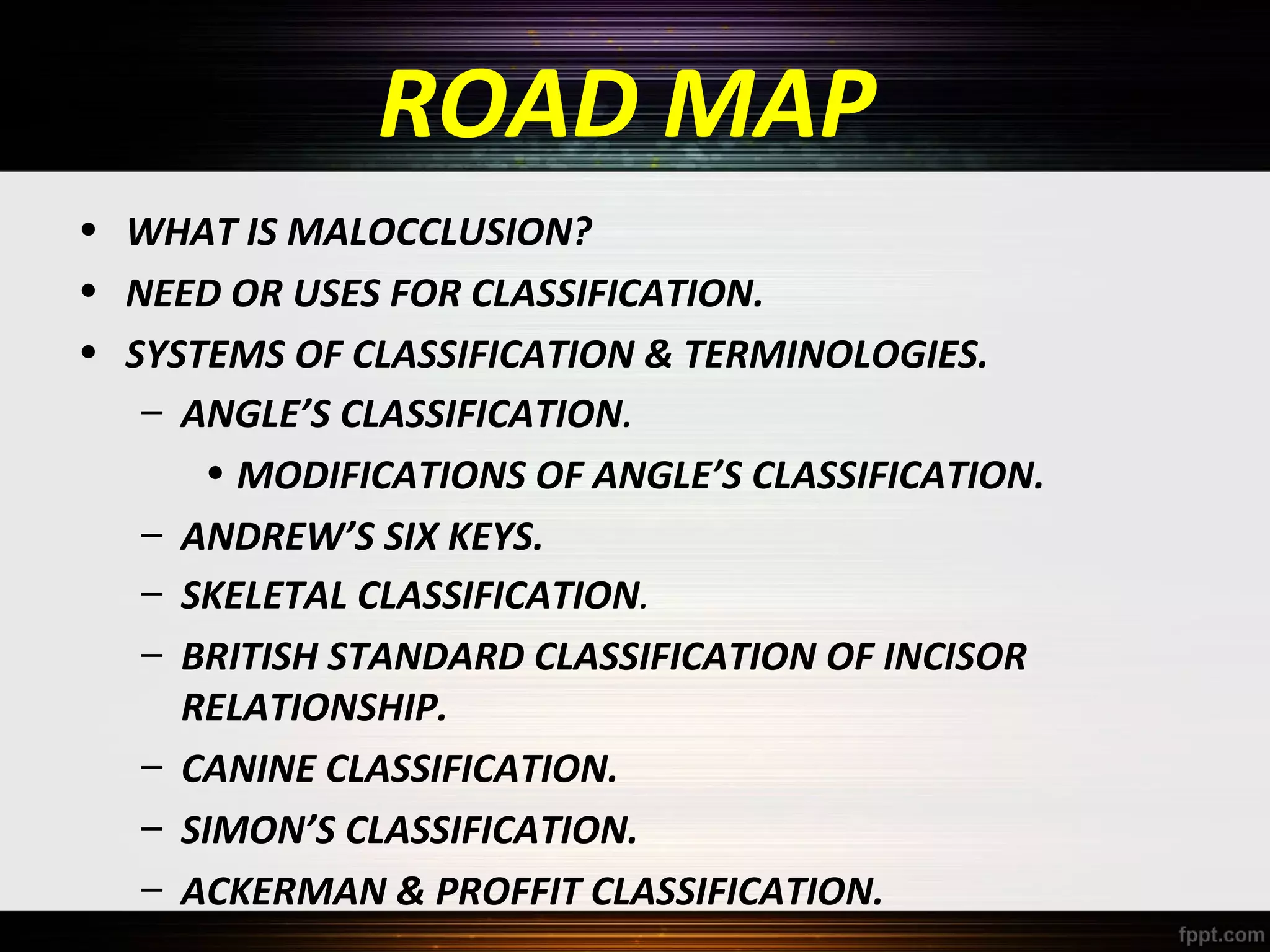 This document discusses various systems for classifying malocclusion. It begins by defining malocclusion and explaining the need for classification systems. It then covers Angle's original 1899 classification system, which categorizes malocclusions based on molar relationships. Several modifications to Angle's system are also presented, including the British Standard classification of incisor relationships. Other classification systems discussed include Andrew's Six Keys, skeletal classification, canine classification, Simon's classification, and Ackerman and Proffit's classification.
