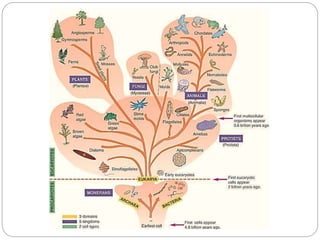This document discusses the taxonomy and classification of microorganisms. It begins by outlining the objectives of discussing taxonomy, naming, and the classification basis for prokaryotes. It then explains Carl von Linné's development of the formal taxonomy system and how organisms are classified from domain to species. The key methods for classifying microorganisms are described as growth on media, microscopic and macroscopic morphology, biochemical tests, serological analysis, and genetic/molecular analysis like DNA sequencing. The three domains of life and binomial nomenclature for naming species are also outlined.