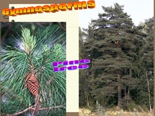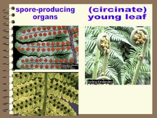 Plants are divided into two main groups: non-flowering plants and flowering plants. Non-flowering plants include mosses, ferns, and gymnosperms. Mosses are the simplest plants and have no roots or vascular tissue, ferns have roots and vascular tissue but reproduce via spores, and gymnosperms are tall trees that bear cones with naked seeds. Flowering plants are further divided into monocots and dicots based on the number of seed leaves and the structure of their leaves.