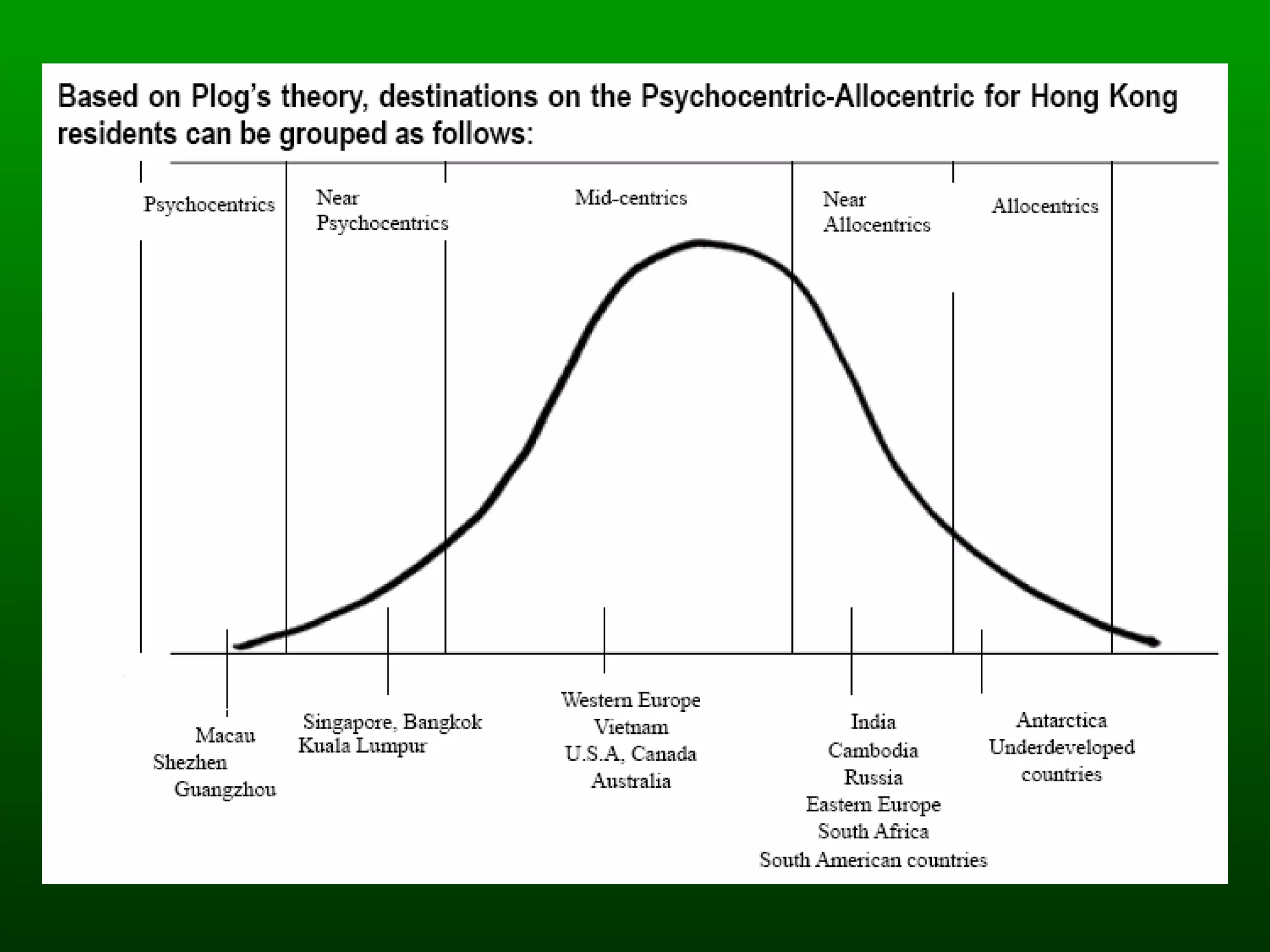 This document discusses two classification systems for categorizing tourists - Cohen's classification and Plog's classification. Cohen's classification divides tourists into four categories based on their level of independence and routine: organized mass tourist, individual mass tourist, explorer, and drifter. Plog's classification categorizes tourists based on their personality and desire for new experiences versus security and familiarity into psychocentric, mid-centric, and allocentric types. The document provides descriptions of each type of tourist in both classification systems and encourages analyzing which destinations and activities would appeal more to each type.
