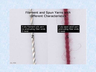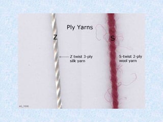 clockwise direction to form yarns. Yarns are twisted in the clockwise direction for "S"