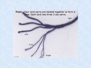 string, and rope. Yarns are produced in various sizes and textures, and also