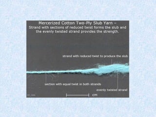 Slub yarns canbe either single or ply yarns. These yarns are characterized by