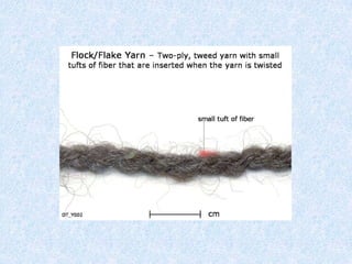 intervals. These tufts can be easily pulled out. Flock/flake yarns are generally