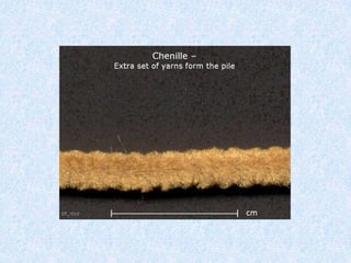 Chenille yarns are pile yarns that are often made by slitting leno weave