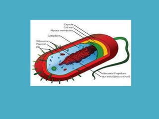 - Bacteria are single-celled prokaryotes that play important roles in nutrient recycling, nitrogen fixation, and producing foods and medicines. They reproduce through binary fission or conjugation.