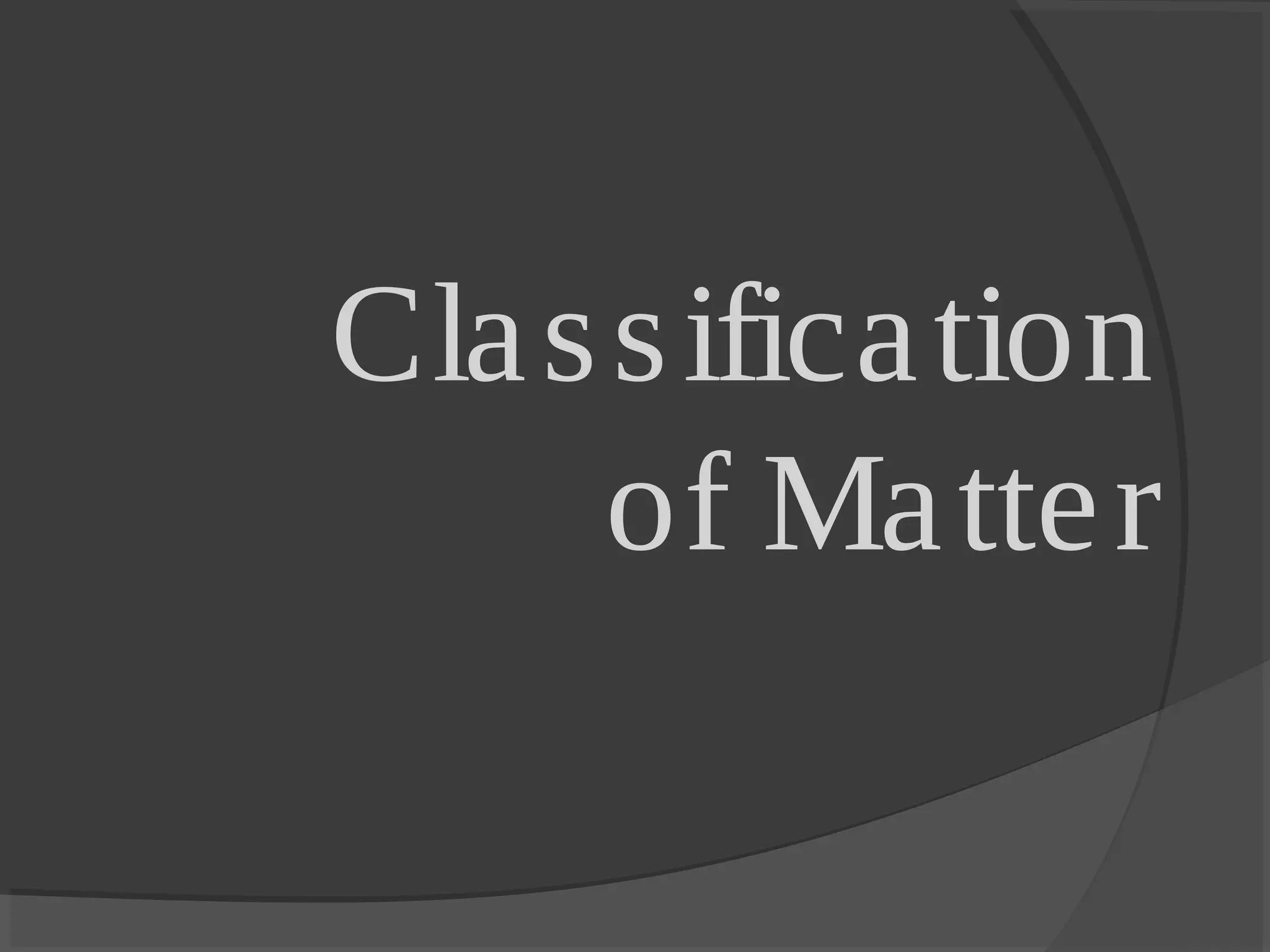 1. Matter is classified as either pure substances or mixtures. Pure substances are uniform and consist of elements or compounds, while mixtures contain two or more substances mixed together.