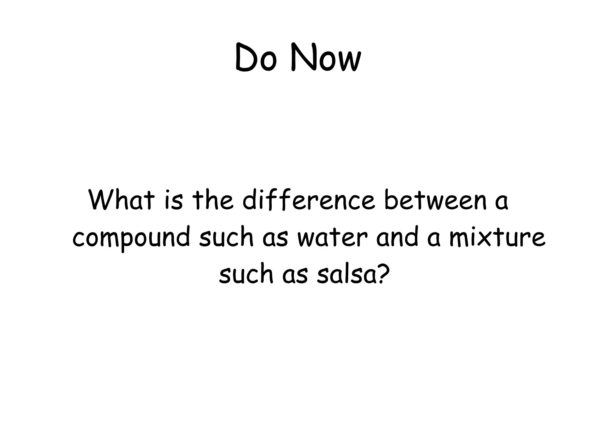 This document discusses the classification of matter into pure substances and mixtures. Pure substances are either elements or compounds, with elements made of only one type of atom and compounds made by the chemical combination of elements. Compounds can be broken down into their constituent elements or other compounds. Mixtures contain two or more substances mixed together without chemical bonding, and can be either heterogeneous, with noticeably different parts, or homogeneous, with an even distribution making the parts indistinguishable.