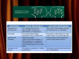 Action Researchis a method of systematic inquiry that teachers