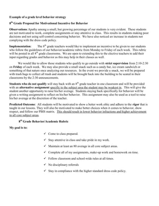 Class Dojo is a web-based tool that allows teachers to award students positive and negative points for their behavior. Students can earn points for things like teamwork, completed work, and helping others. They can lose points for behaviors like talking out of turn, not following directions, or incomplete homework. Students and parents can access Class Dojo at home to view points. Teachers can use Class Dojo to reward good class behavior with activities like extra recess or prizes for students with high points. Consequences for negative points include contacting parents after three strikes in a week or assigning detention. The goal is to reduce office referrals by first giving students chances to improve their behavior.