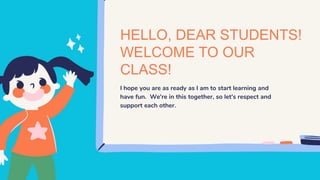 Teacher Nim provides classroom rules and reminders for students attending Sta. Rosa National High School. The rules include being on time, being prepared for class with all necessary materials, wearing appropriate clothes, being respectful by listening attentively and raising your hand before speaking, being fully present by paying attention and not being distracted, asking questions if unsure of something, and supporting each other. Students are asked to follow instructions for submitting assignments and take breaks while maintaining a study routine. Teacher Nim's contact information is provided for any questions or clarifications.