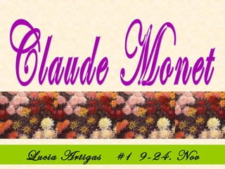 Claude Monet (1840-1926) was a famous French Impressionist painter born in Paris. He helped establish Impressionism through his painting Impression, Sunrise. Monet studied art in Paris and painted outdoors capturing natural light and scenes. He is best known for his series paintings depicting the same subject in different lights such as his Haystacks series. His home and gardens in Giverny, France which featured his famous water lily paintings, are now a popular tourist destination.