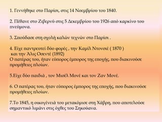 5.Είχε δύο παιδιά , τον Μισέλ Μονέ και τον Ζαν Μονέ.