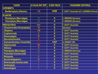 1) Provide taxonomic data to various Antarctic biodiversity information systems.