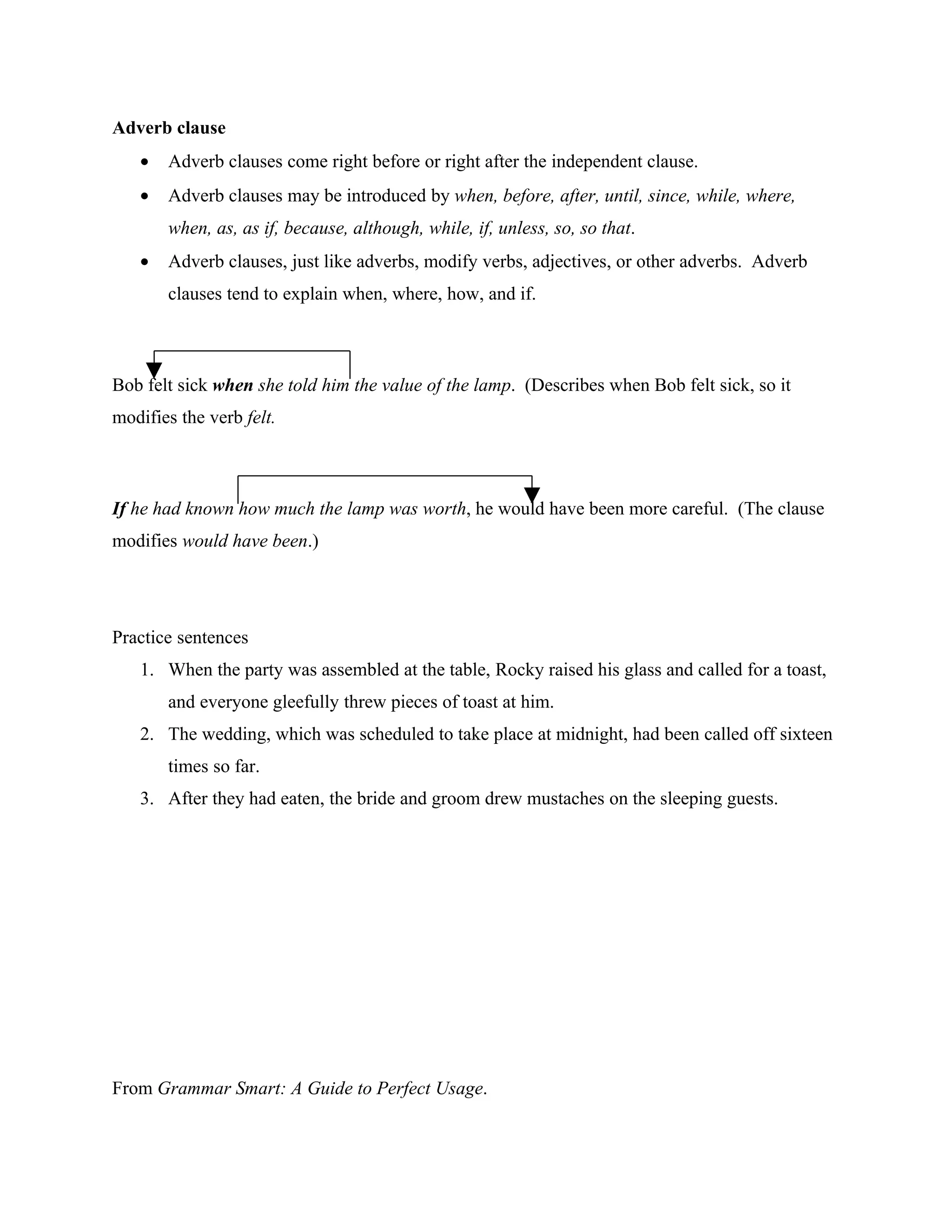 Clauses contain a subject and a verb and can be either independent or dependent. Independent clauses can stand alone as a complete sentence, while dependent clauses cannot. There are two main types of clauses: adjective clauses, which modify nouns, and adverb clauses, which modify verbs, adjectives or other adverbs. Adjective clauses are introduced by relative pronouns like "that" or "which", while adverb clauses are introduced by words like "when", "before" or "if". The document provides examples of different types of clauses and how they are used in sentences.