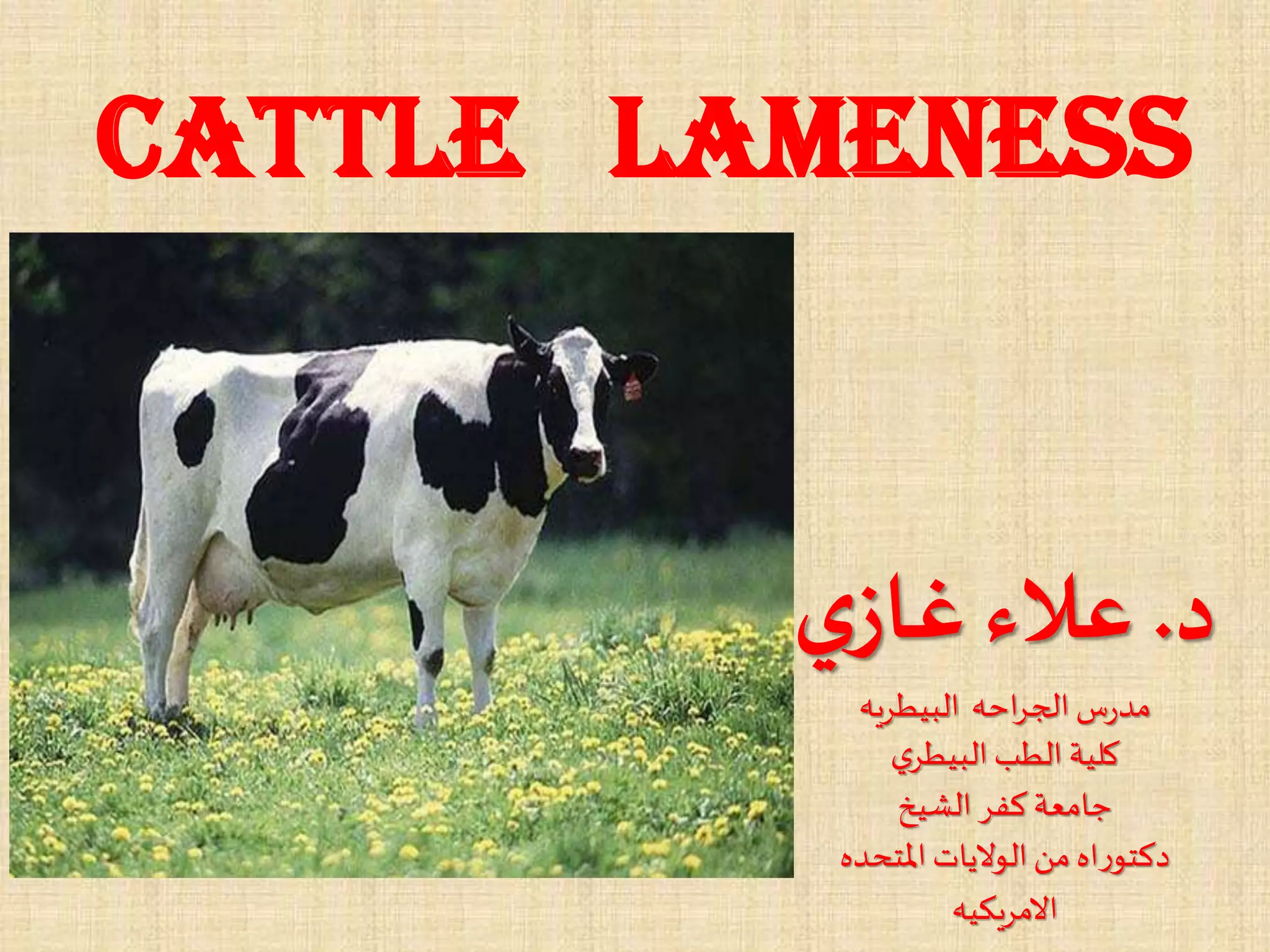 Cattle lameness is one of the most significant issues in dairy farming, with 95% of lame cattle being dairy breeds. The majority of cases involve the digits, with 50% being in the hind limbs and 50% involving the horny tissue or skin such as digital dermatitis. Foot rot is caused by bacteria such as Fusobacterium necrophorum living in soil that enters through skin injuries between the toes, causing swelling and pain. It is treated with antibiotics and cleaning of lesions. Digital dermatitis causes lameness and lesions on the feet, and is linked to bacteria like Dichelobacter and Treponema, though its cause is uncertain. Interdigital dermatitis is a skin infection between the