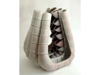 Beate Kuhn creates sculptural ceramic works by assembling individually thrown and cut clay elements. Her pot