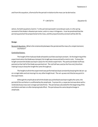 1) The experiment investigated the relationship between the period of a simple harmonic oscillation and the mass of the oscillating system using a hacksaw blade.