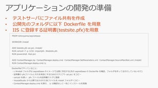 アプリのデプロイ、コンテナの作成 3. コンテナのテスト 4. レジストリへの登録