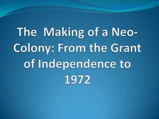 3) The Hukbalahap movement empowered peasants against landlords but the government cracked down on it. Neo-colonial relations saw the US