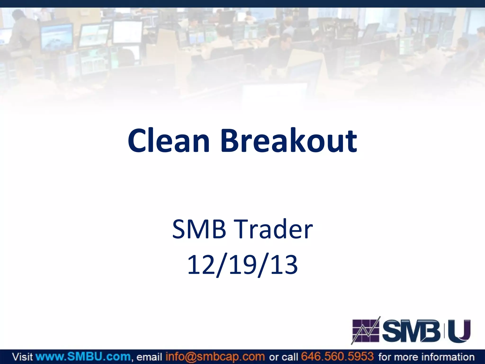 SMB TRAINING provides educational seminars and training courses on trading, both online and in-person. The training is for educational purposes only and does not constitute investment advice. SMB TRAINING is not a broker dealer. It offers a number of educational products and services to help traders learn. Any investment decisions should be made solely by the individual based on their own financial situation and risk tolerance.