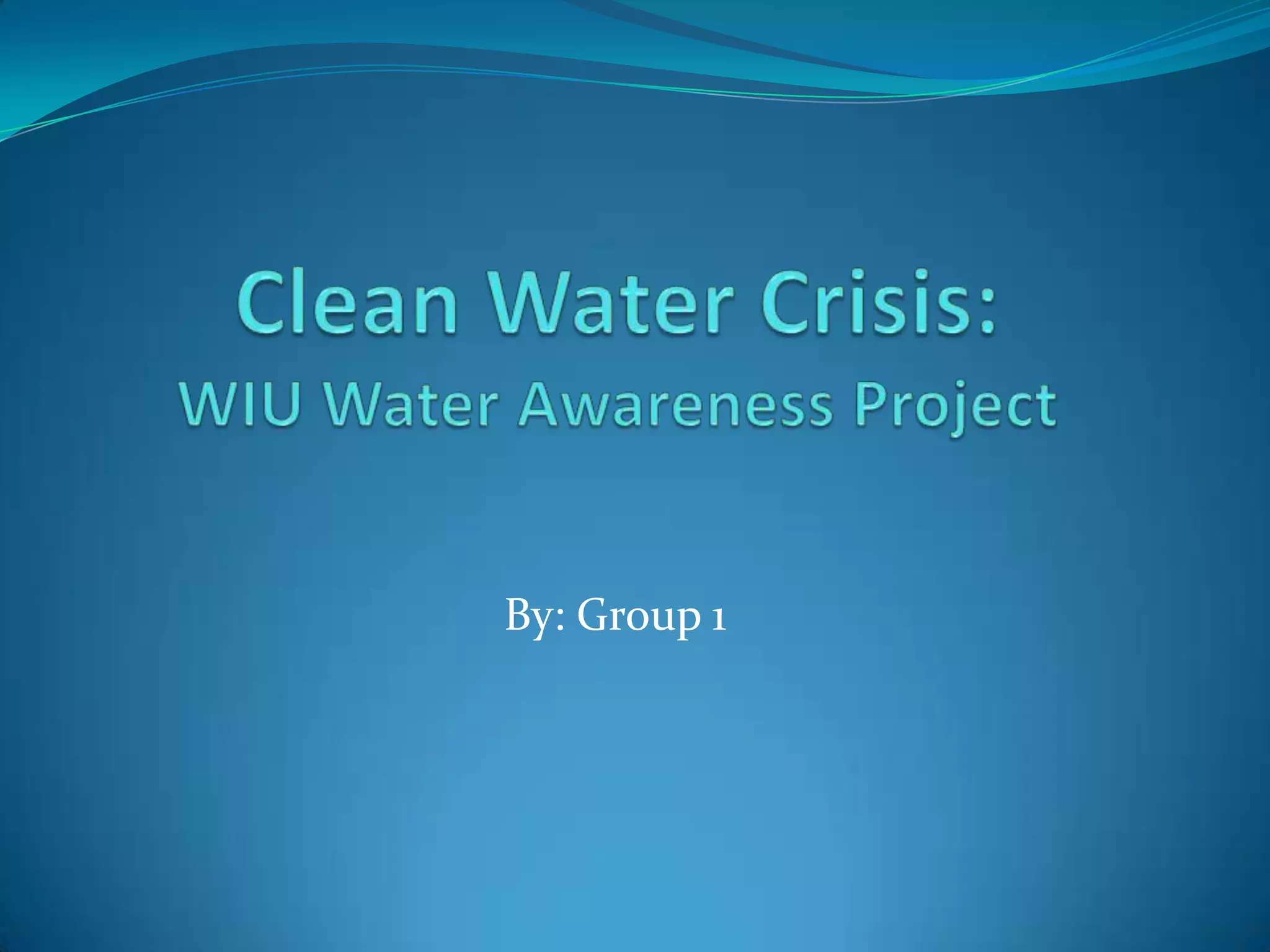 Nearly 1 billion people lack access to clean drinking water, and contaminated water can cause diseases that kill millions each year. This water crisis affects women and children in particular, who often must walk miles each day to reach polluted water sources. The goal of the Water Awareness Project is to raise awareness of this global issue and provide information on how to help through donations of time or money to organizations working to supply communities with safe drinking water.