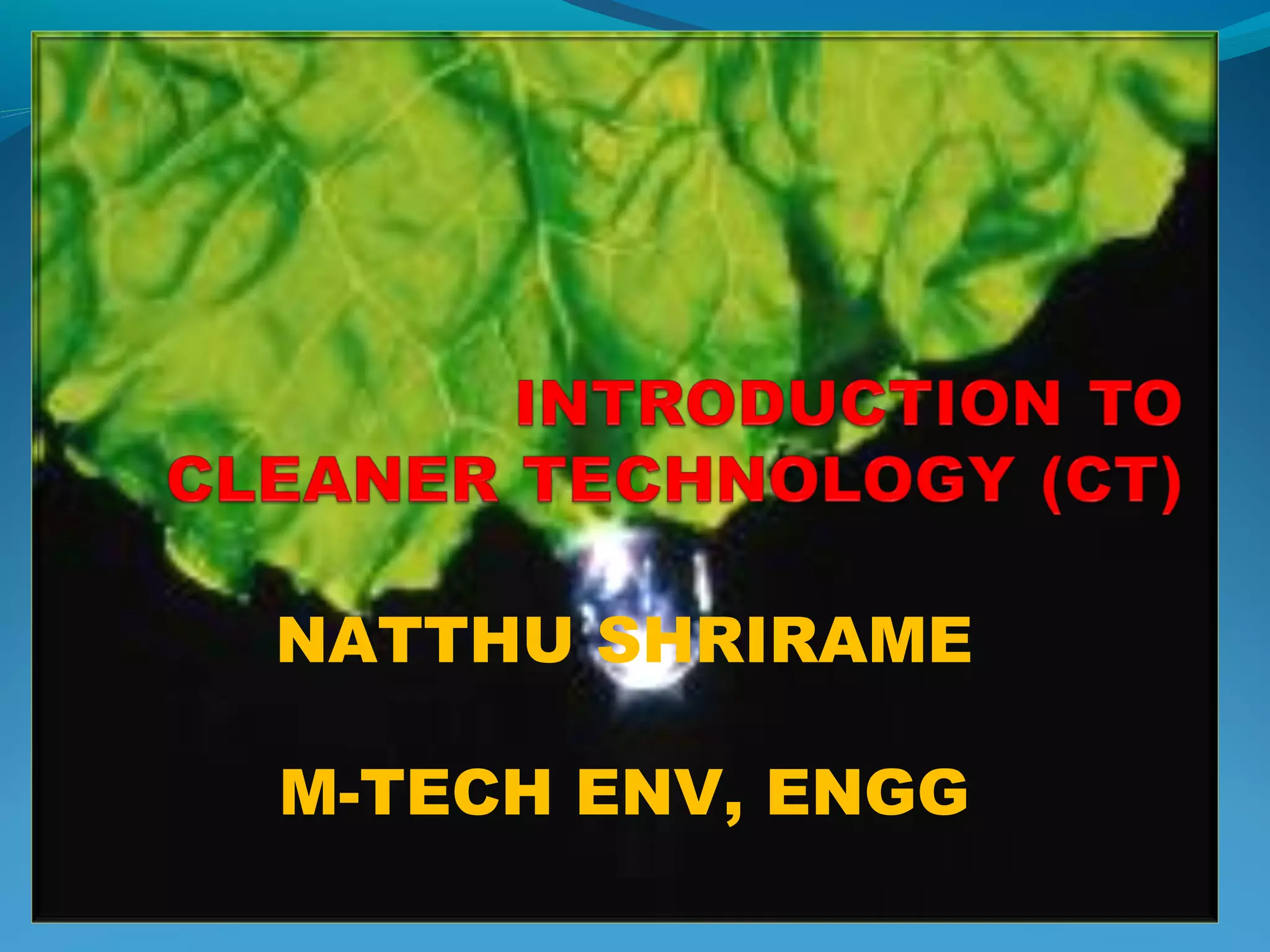 This document discusses cleaner technology and waste reduction strategies. It defines cleaner technology as the continuous application of preventative strategies to increase efficiency and reduce risks. It discusses various cleaner technology practices like good housekeeping, input substitution, and technology changes. The benefits of cleaner technology include improving the environment, increasing economic benefits and productivity, and gaining competitive advantage. Barriers include a lack of information and competing priorities, while drivers include improvements in productivity and environmental reports.
