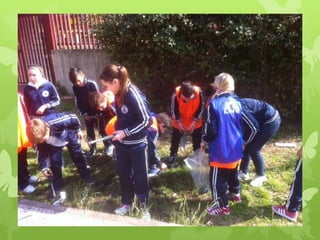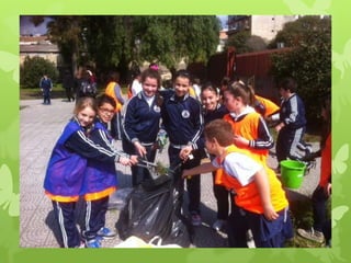 The document discusses a Comenius Project cleaning day held by classes IV B through V C during the 2013-2014 school year. The event was led by teachers Pinella Bertuccelli, Anna Maria Carciotto, and Lucia Rigano and involved cleaning as part of the Comenius G.R.E.E.N. project. A photo gallery was also provided to document the cleaning day.