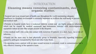 1) Maintaining cleanliness in hospitals, especially in operating rooms, is extremely important to prevent infections in patients and medical staff.