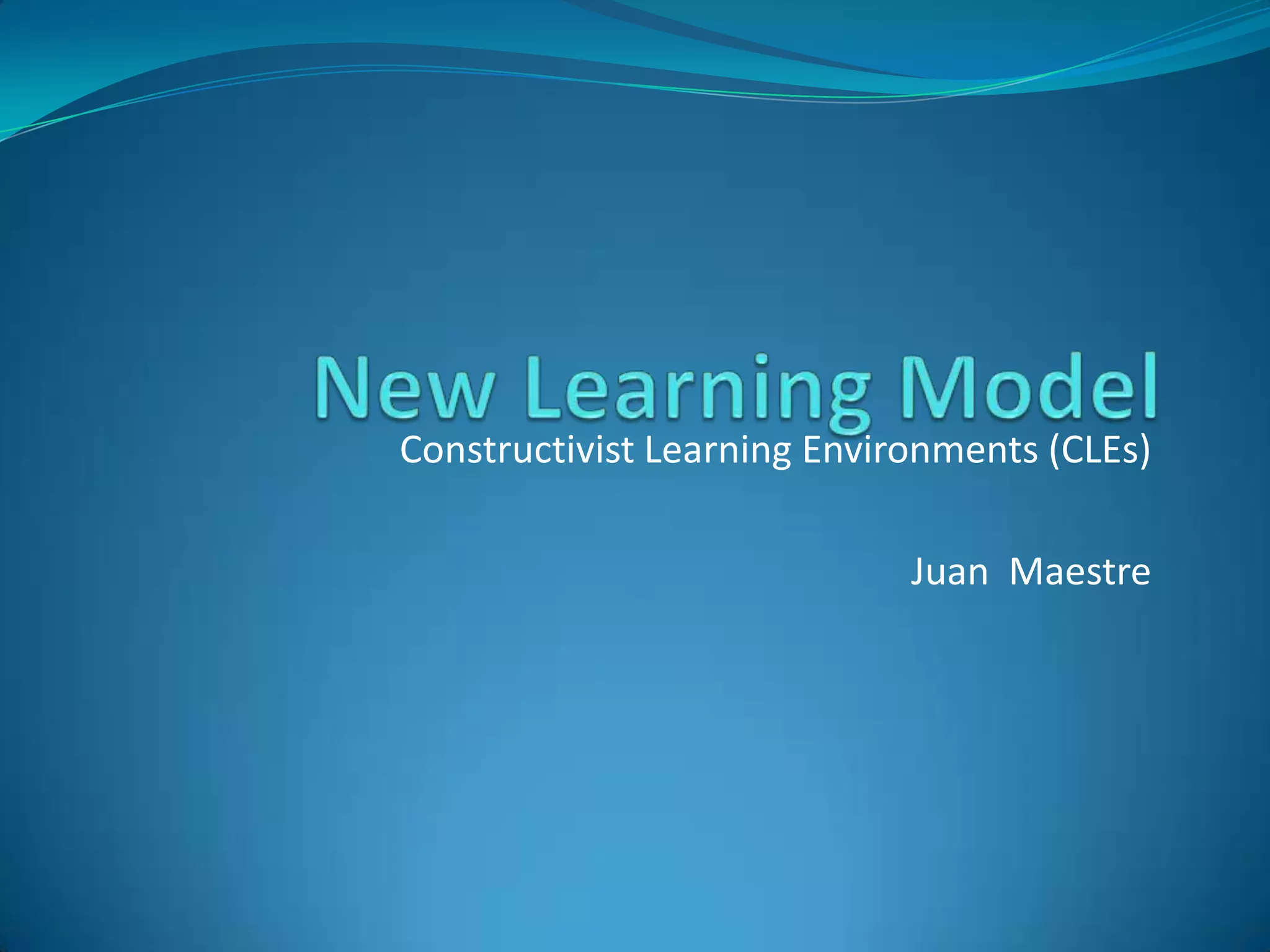 This document describes a proposed Constructivist Learning Environment (CLE) model to be implemented at the Universidad Politécnica Salesiana in Quito, Ecuador. The CLE model would provide 50 engineering and robotics students with the resources and tools to solve real-world problems in the community. During their last two semesters, students would work on projects using technology, information sources, and input from tutors and the community to develop innovative solutions. Key aspects of the CLE model include technology-enabled workspaces, access to digital resources, and guidance from tutors to help students apply their knowledge and develop new solutions.
