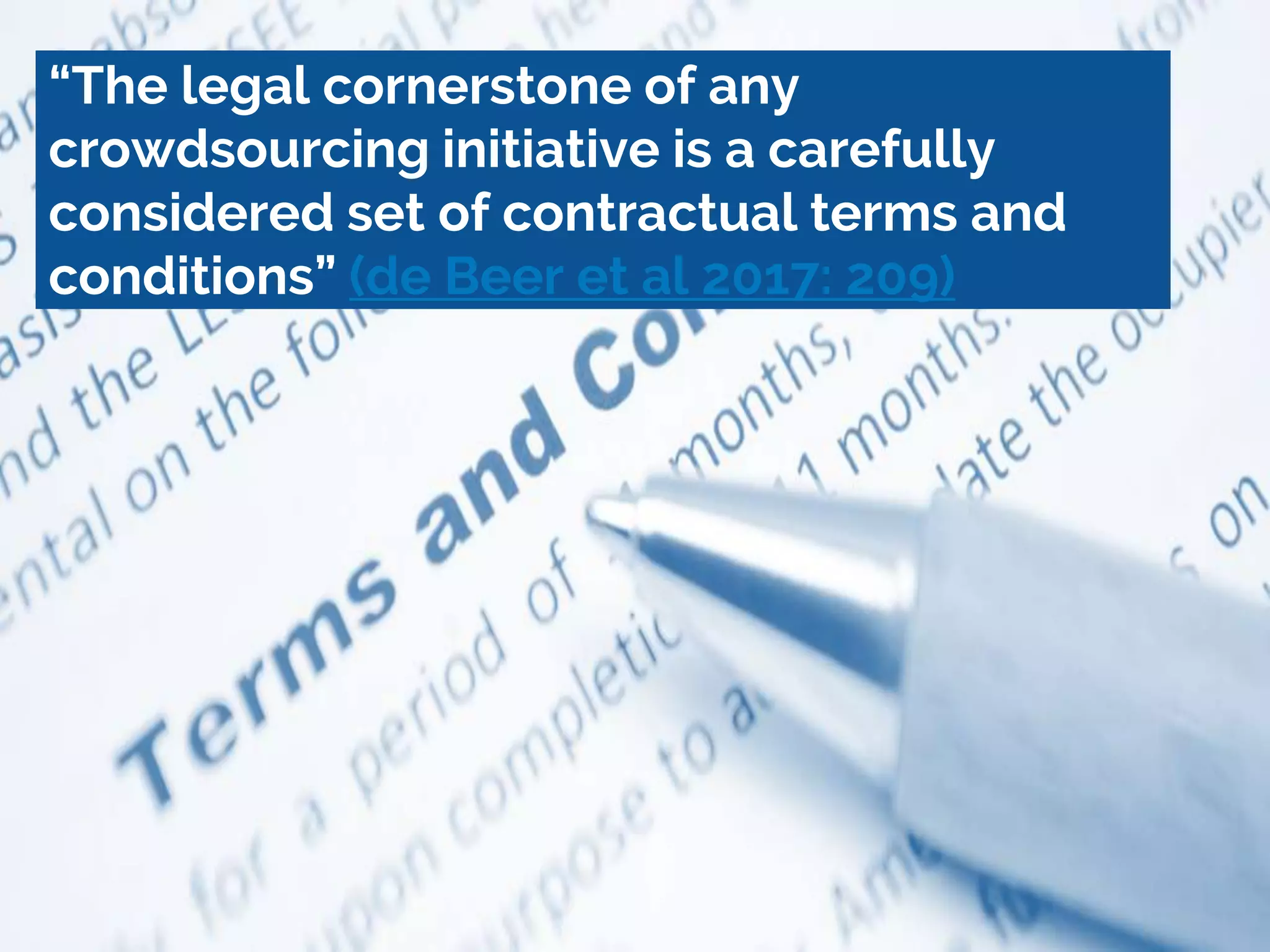 The document discusses managing intellectual property (IP) in crowdsourcing initiatives, emphasizing the need for clear contractual terms to protect both organizations and participants. It provides examples, such as Moleskine's logo design contest and PhantomAlert's data crowdsourcing, illustrating potential IP-related risks and the importance of transparency and clarity in agreements. Additionally, it outlines various legal approaches organizations can adopt to manage IP and liability effectively, suggesting collaboration with specialized crowdsourcing providers for better outcomes.